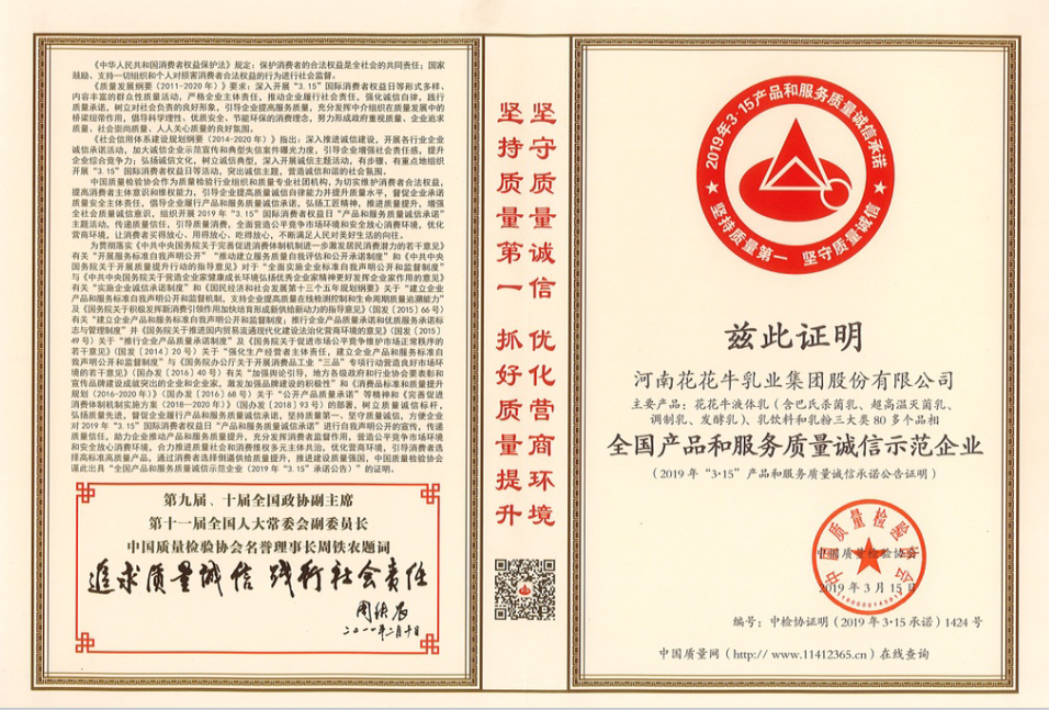 全國乳品行業(yè)質(zhì)量領先企業(yè)